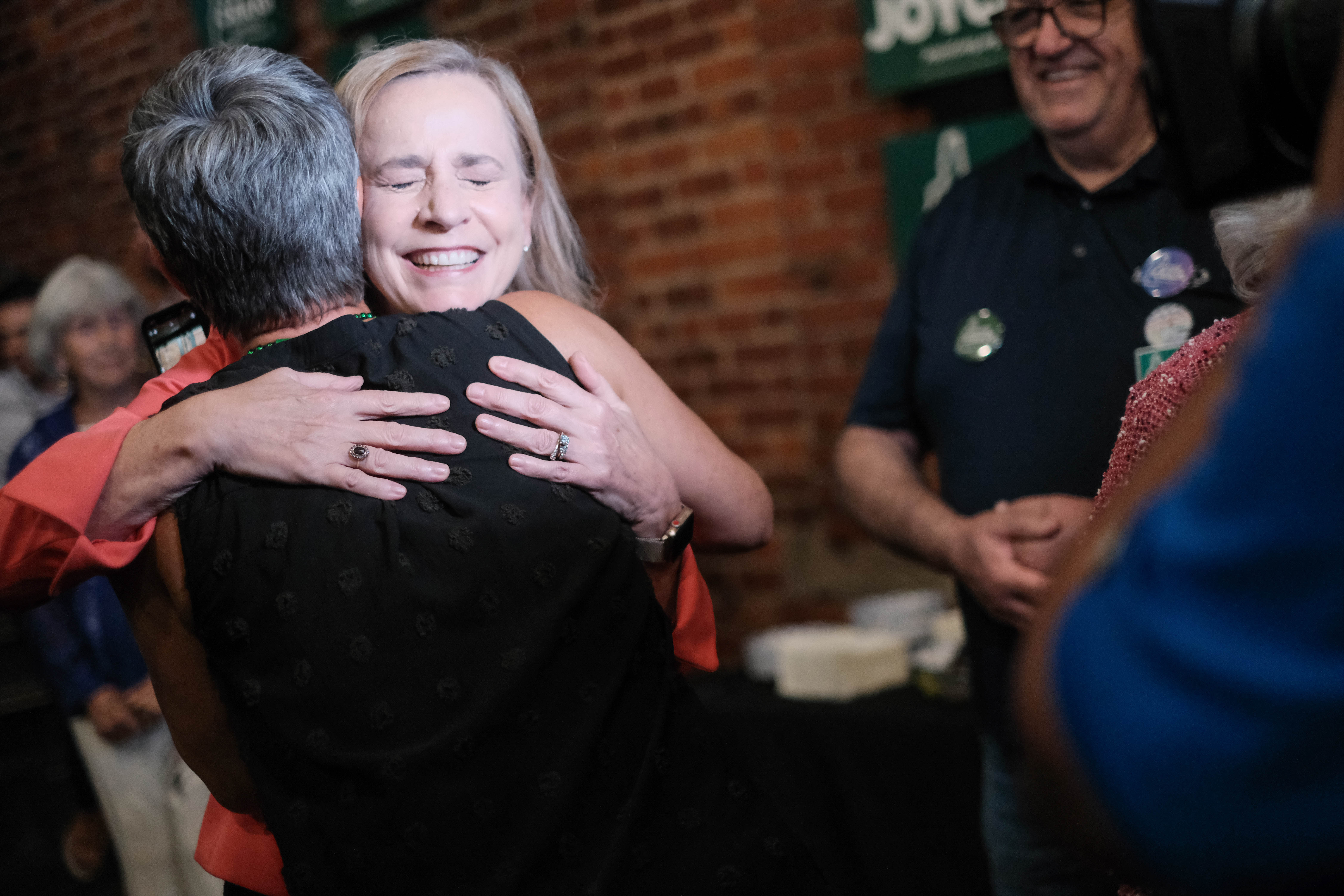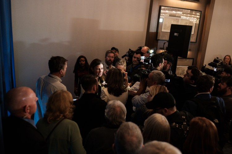 Governor-Elect Ayotte whisked off to the press scrum, just moments after the final words of her victory speech.