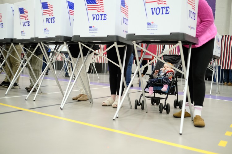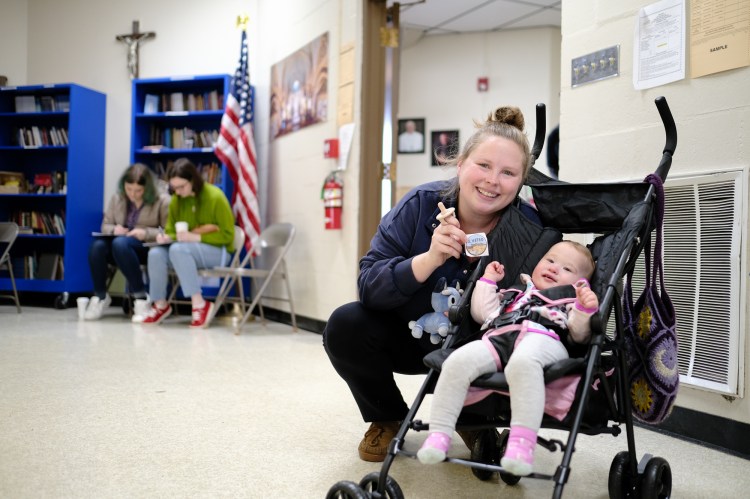 “We have to do it for them,” Chelsea Fallisi said, pointing to her year-old daughter. Fallisi, of Concord, voted Tuesday at Christ the King Parish.