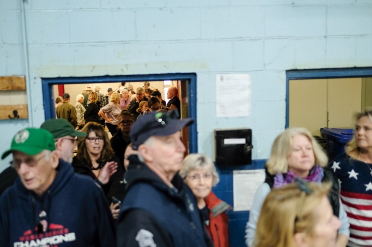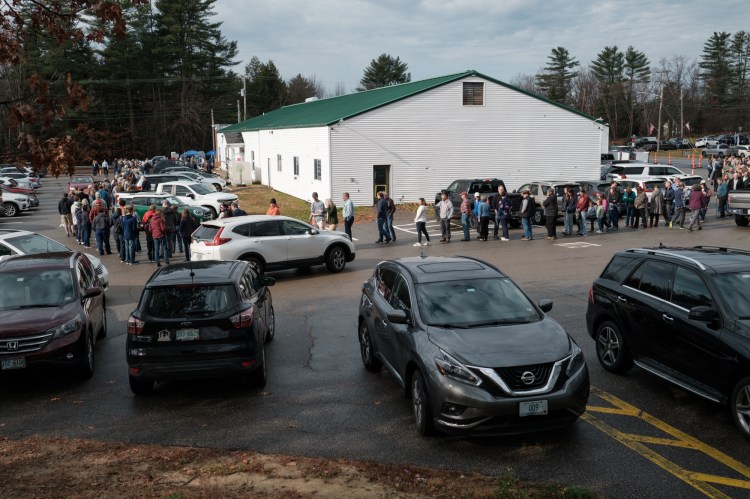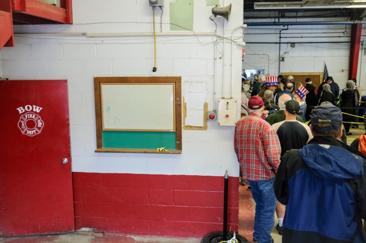 Turnout by mid-day Tuesday in Bow was described as “epic” and “unprecedented” by long-time residents and election workers. The line at the Bow Community Center touched all four sides of the building just before noon, which had been expected to be a less busy time at the polls. Multiple voters said that in the past, the longest they had waited at the polling site was fifteen minutes.
