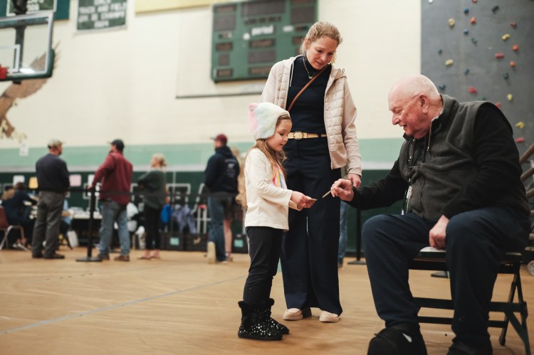 When voter stickers ran out at Hopkinton Middle High School Tuesday night, Maeve Robbins appeared to save the day. Robbins, accompanied by her mother, Melissa Robbins, made the rounds handing out her own stickers which she brought from home.